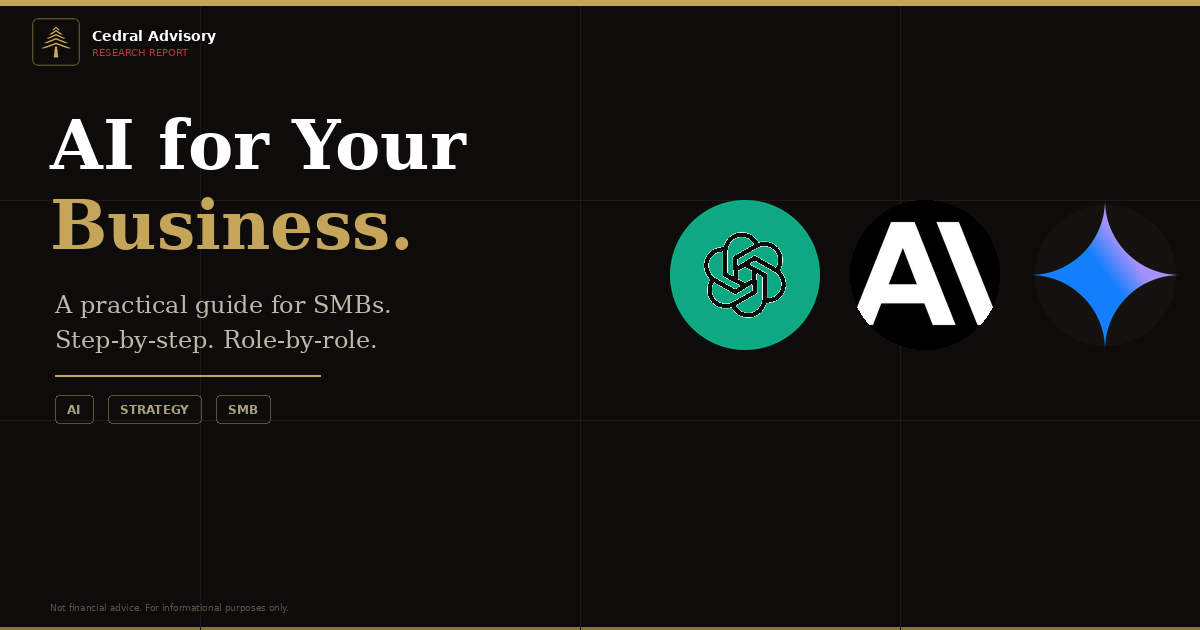 April 2026 — This report addresses the single most common AI question Cedral receives from SMB owners and operators: which tools should we actually use, and how do we get real returns from them? It covers what AI can and cannot do for your team, a role-by-role playbook with real prompts, a five-step getting-started framework, an in-depth guide to building persistent context with your AI, a full comparison of the four major enterprise platforms, and a deliberate two-layer stack recommendation for both Microsoft-native and Google-native businesses.